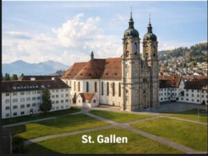 Biara St. Gallen menjadi pusat spiritual dan pendidikan sejak abad pertengahan. Perpustakaan biara yang legendaris menyimpan ribuan manuskrip kuno dan menjadi salah satu perpustakaan terindah di dunia. Saat melangkah masuk, pengunjung akan merasakan suasana hening yang begitu kuat, seolah waktu berjalan lebih lambat.