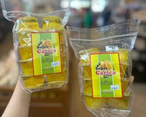 Carica biasanya dikemas dalam bentuk manisan basah dalam sirup, sehingga tahan cukup lama dan mudah dibawa sebagai buah tangan.